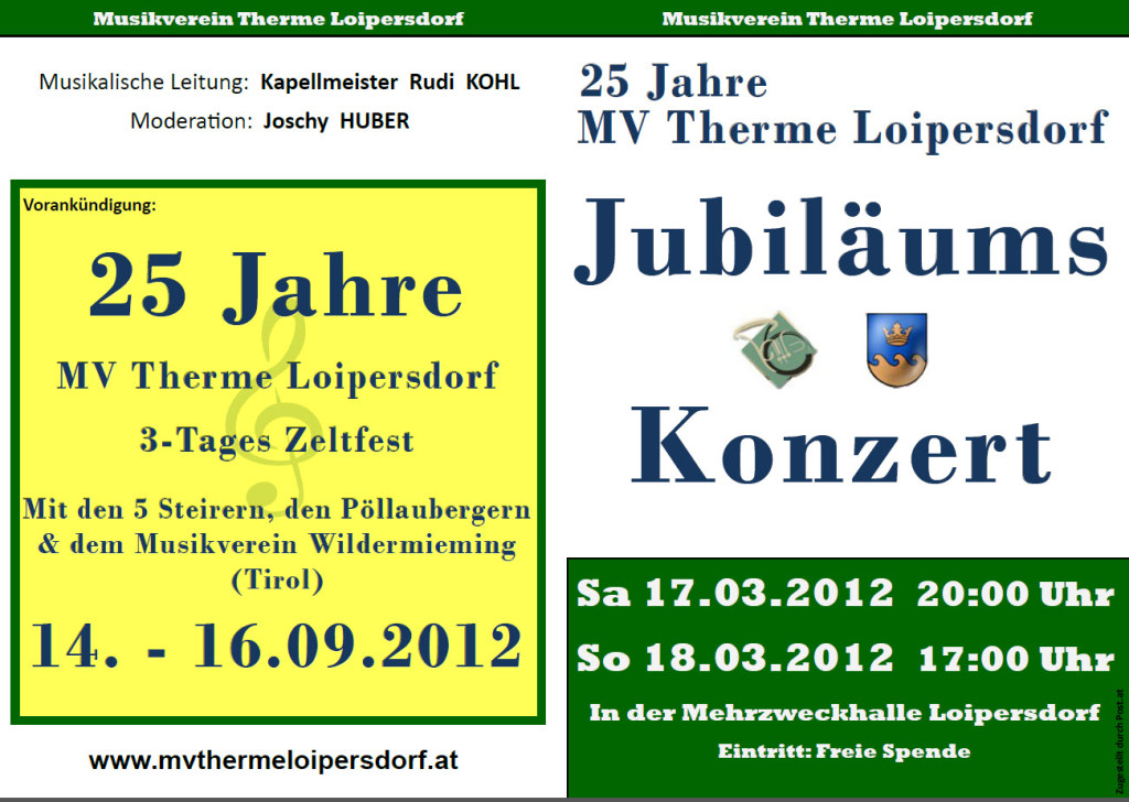 Der MV Therme Loipersdorf freut sich schon jetzt Sie alle bei diesem Jubiläumsfest begrüßen zu dürfen!